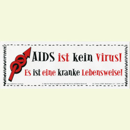 Aufkleber mit der Aufschrift "AIDS ist kein Virus! Es ist eine kranke Lebensweise!"